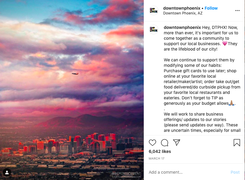 The message was closely repurposed by Downtown Phoenix (90.8k followers) shortly after, demonstrating our leadership in social media strategy closely monitored by industry peers.